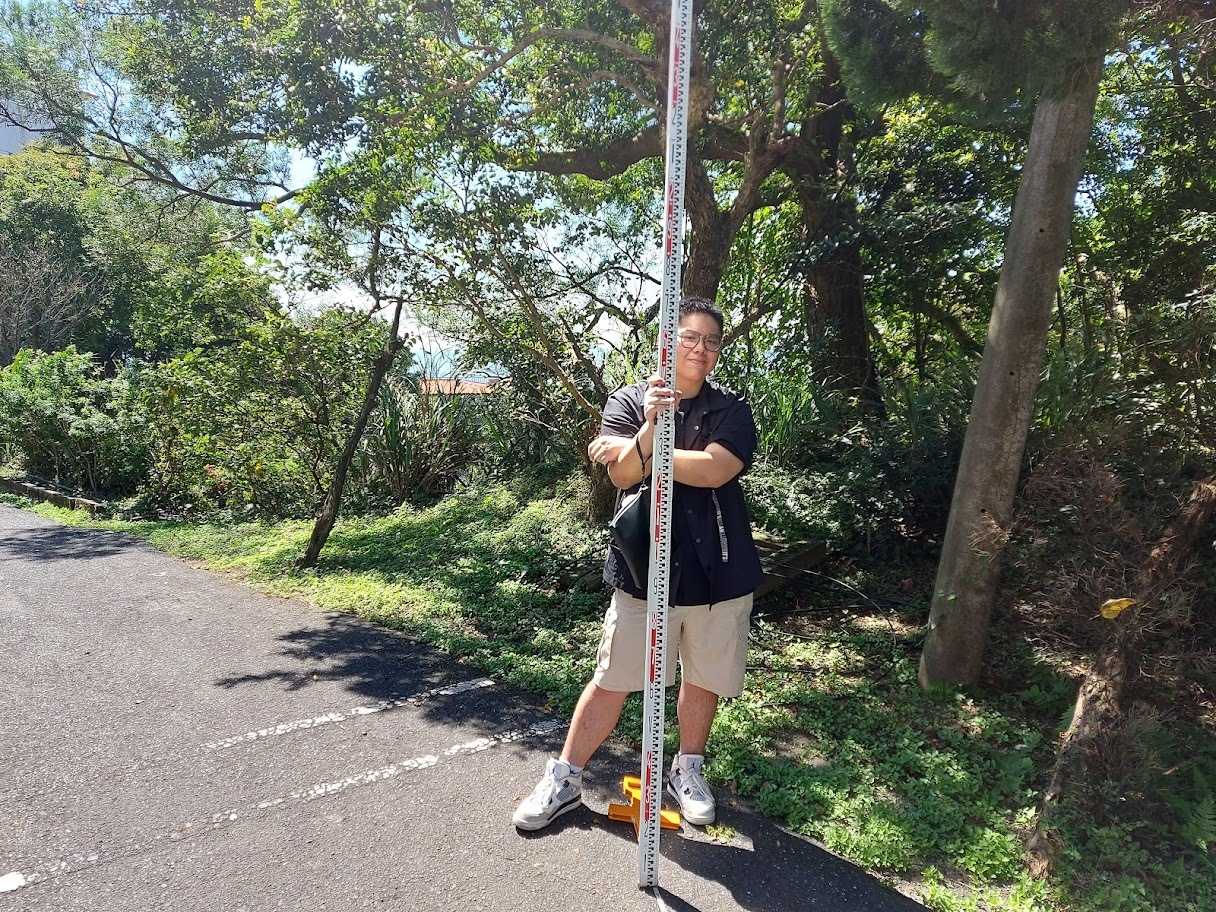 樹高因為雷射測距儀無法定焦,樹高儀也非一般公司常見,因此採用最容易取得的量棒測量法進行估算