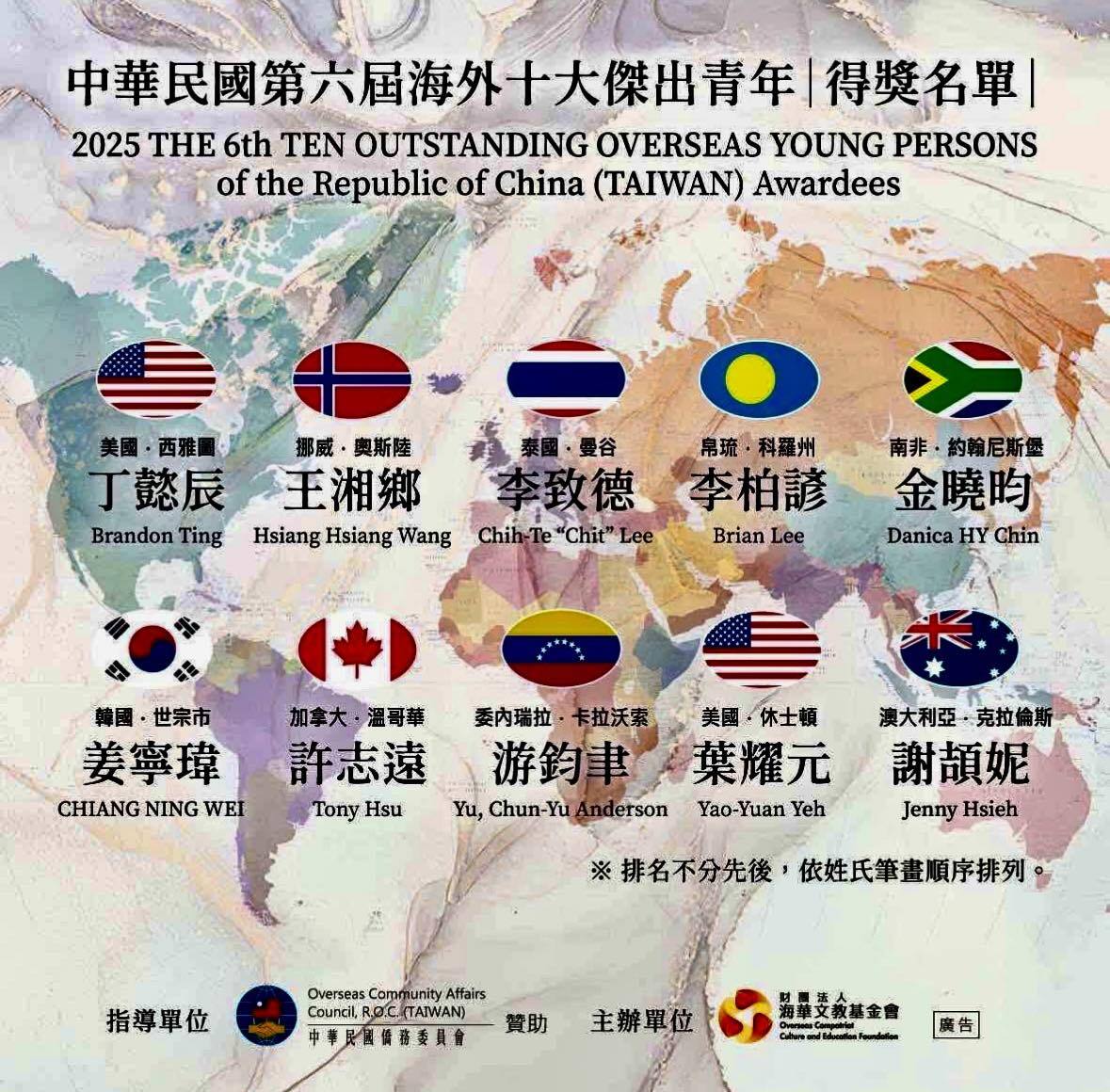 中華民國第六屆海外十大傑出青年得獎名單 (資料來源:海華文教基金會)
