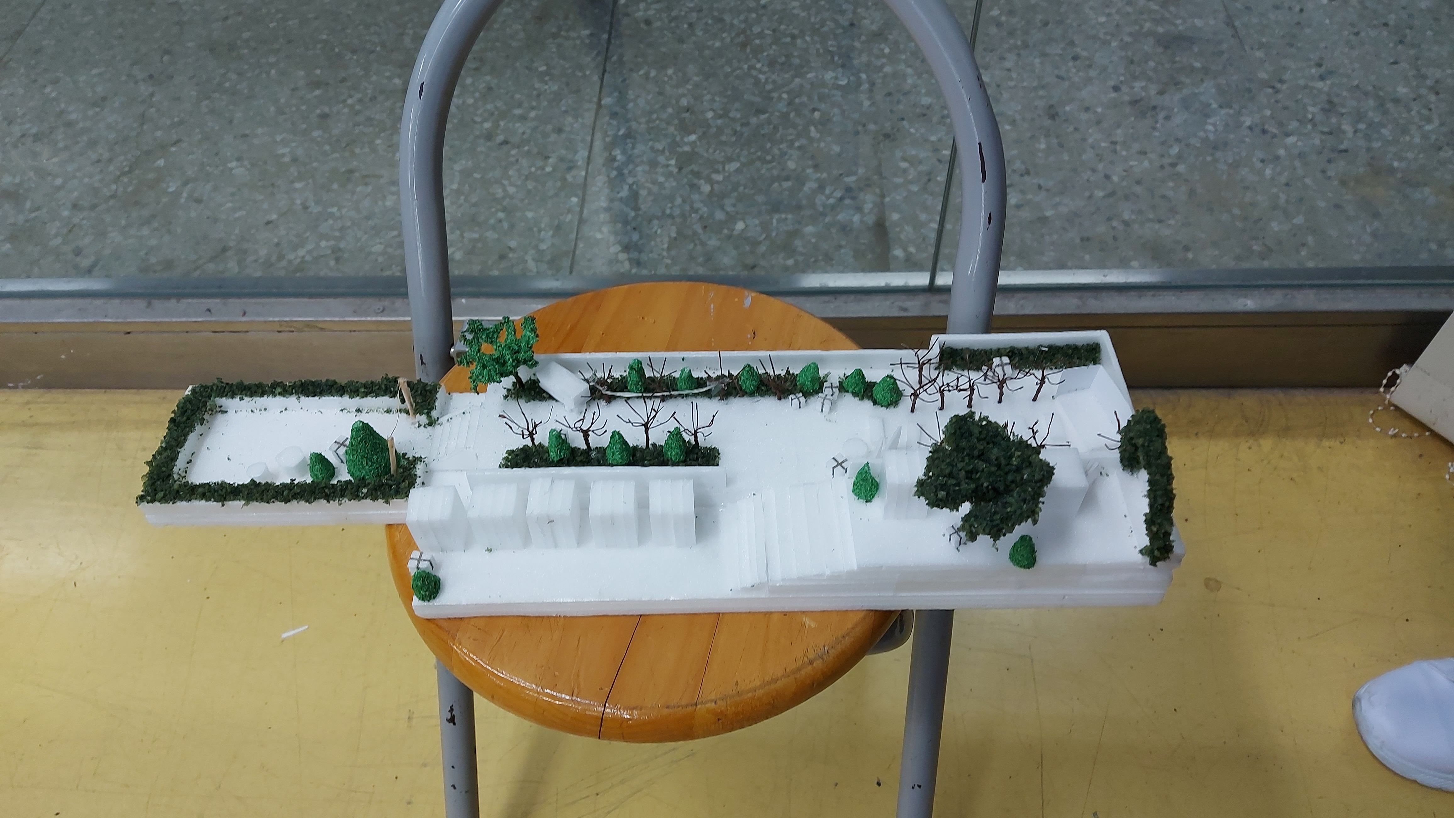 第二階段:因應總務處校園施工期程的與原計畫的落差,轉換實作基地,同時因應建築系進度從原計畫的調整,我們老師們快速討論因應對策,帶領學生運用前期耶誕市集的研究基礎,進行新基地的調查,再快速運用AI進行新基地的空間發想,讓同學們了解:AI 是要輔助設計,藉由其快速產生模擬效果,讓嘗試發想變得更快因而可以更多,而且可以更容易調整,是設計師在主導設計。